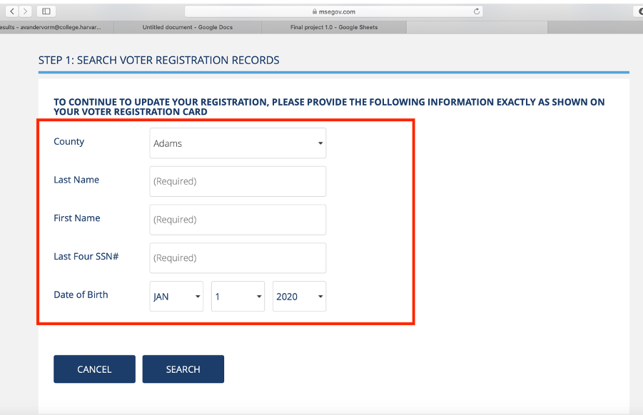 Figure 10.4a. A screenshot demonstrating the area of Mississippi’s voter registration look-up site that rendered it inaccessible.