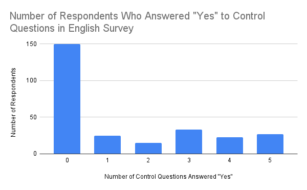 Figure 1. Number of Survey Respondents Who Answered “Yes” to Control Questions in English Survey