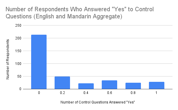 Figure 3. Number of Survey Respondents Who Answered “Yes” to Control Questions (English and Mandarin Aggregate)