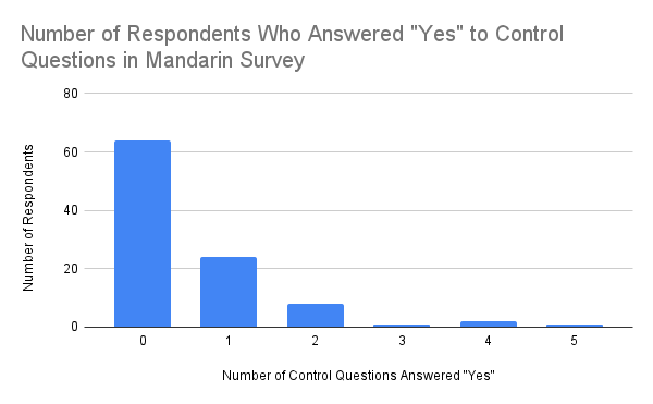 Figure 2. Number of Survey Respondents Who Answered “Yes” to Control Questions in Mandarin Survey