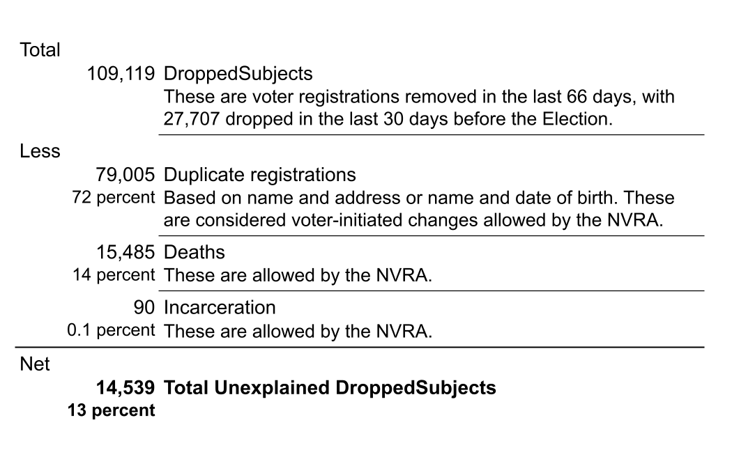 DroppedSubjects. The “DroppedSubjects” in this study are the 109,117 voters whose registrations were removed from Voter Data during the Last 66 Days.