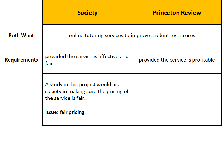 Society versus Princeton Review is the key conflict in this study, as a dialectical chart.